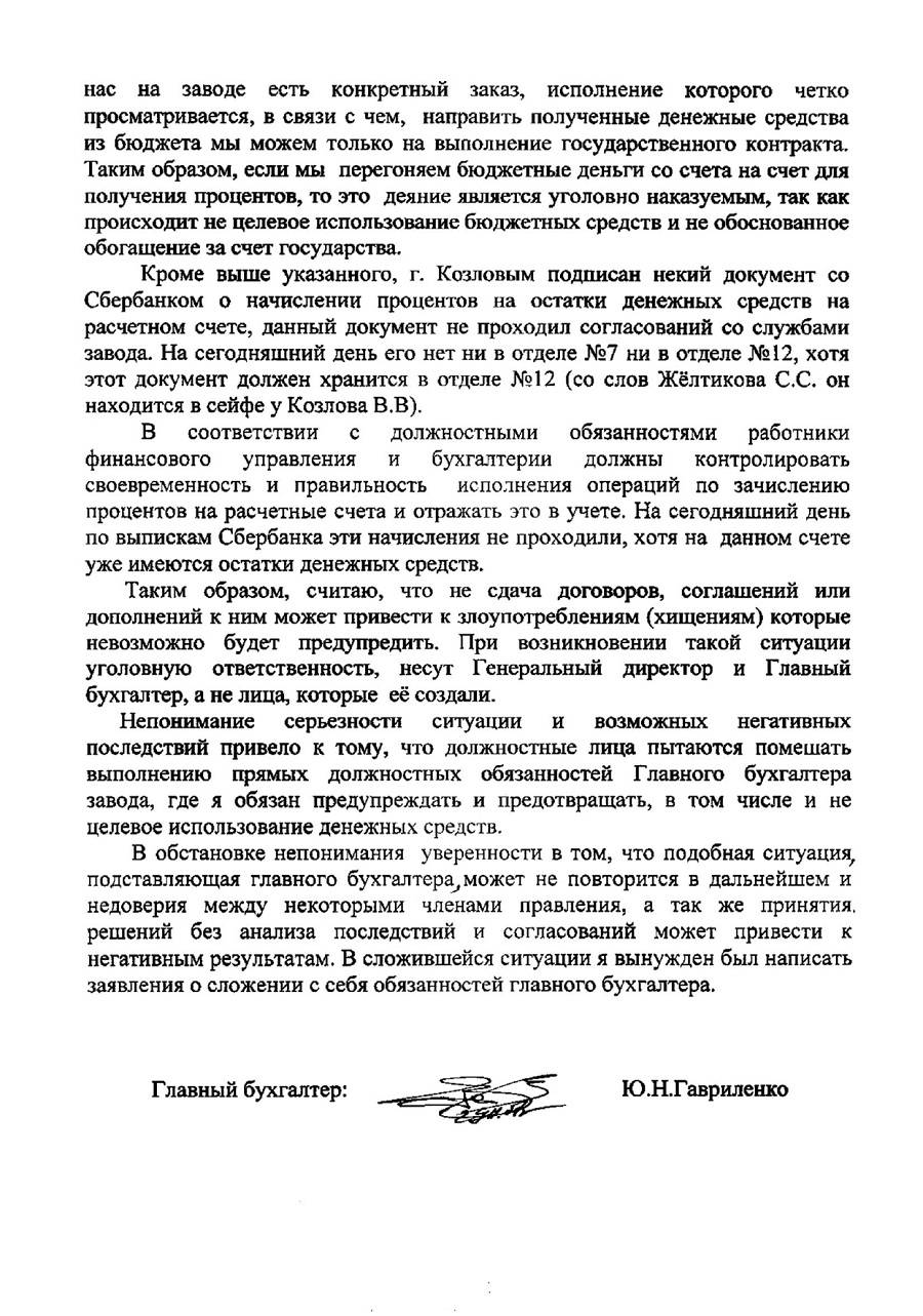 Думаете, Леонид Белых дал ход этой докладной? Ошибаетесь – главбух Гавриленко был скоропостижно уволен, а в январе 2008 года был выведен из состава членов Правления улан-удэнского авиазавода. Жёлтиков и Козлов, указанные в докладной, наоборот, пошли в гору.