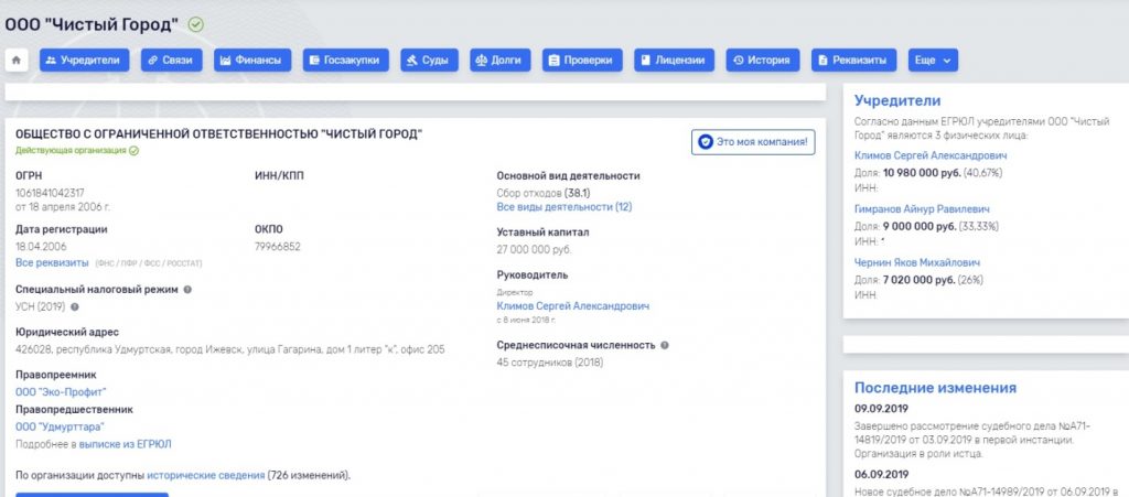 Видимо, «мусорный бизнес» стал в республике перспективным занятием, потому что в 2018 году бывший министр ЖКХ Удмуртии Иван Маринин (ИНН 183100941201 – прим. «Компромат-Урал») стал директором в ООО «Спецавтохозяйство», писал «Коммерсант».