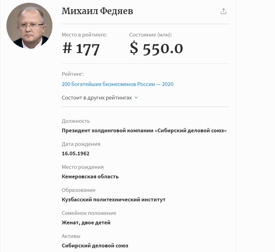 Шахта «Листвяжная» входит в состав компания «СДС-уголь», а она в холдинг «СДС» Михаила Федяева, отца действующего депутата Госдумы Павла Федяева. На этой неделе компания «СДС-строй», принадлежащая сестре Михаила Федяева Светлане Рыбальченко, получила от властей Кузбасса контракт на строительство обхода Кемерово за 54.7 млрд руб.