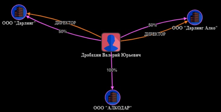 ООО «Дарлинг» - региональный алкогольный дистрибьютор, с выручкой за 2017 год почти в 363 млн. рублей. Бизнес контролируют братья Александр (ИНН 231001292218) и Валерий (ИНН 231001293028) Дробахины. Валерий Дробахин является директором компании и бенефициаром других ООО: «Алкодар» (действует с 2018 года) и «Дарлинг Алко» (выручка за прошлый год – 170 млн. рублей, второй соучредитель – Александр Дробахин). В 2017 году Росалкогольрегулирование выявило несколько нарушений в деятельности ООО «Дарлинг». По сведениям редакции «Компромат-Урал», ООО «Алкодар» сейчас переживает проверку другого органа - Департамента потребительской сферы и регулирования рынка алкоголя Краснодарского края. Подчинённых губернатора Вениамина Кондратьева интересует, насколько достоверные сведения предоставило новоиспечённое дробахинское ООО для переоформления лицензии на розничную продажу алкогольной продукции.