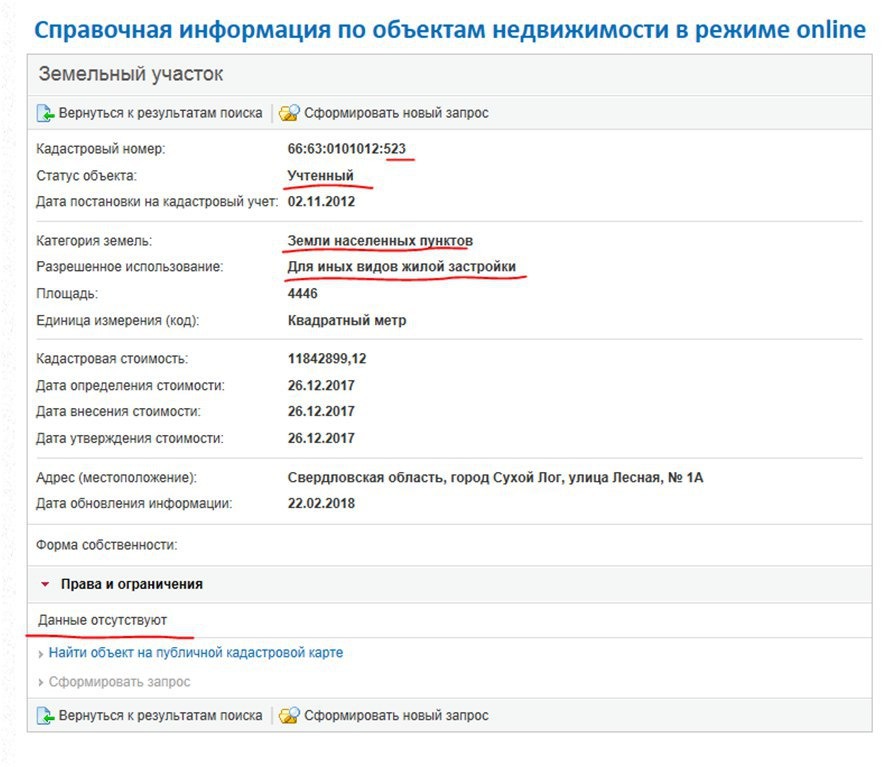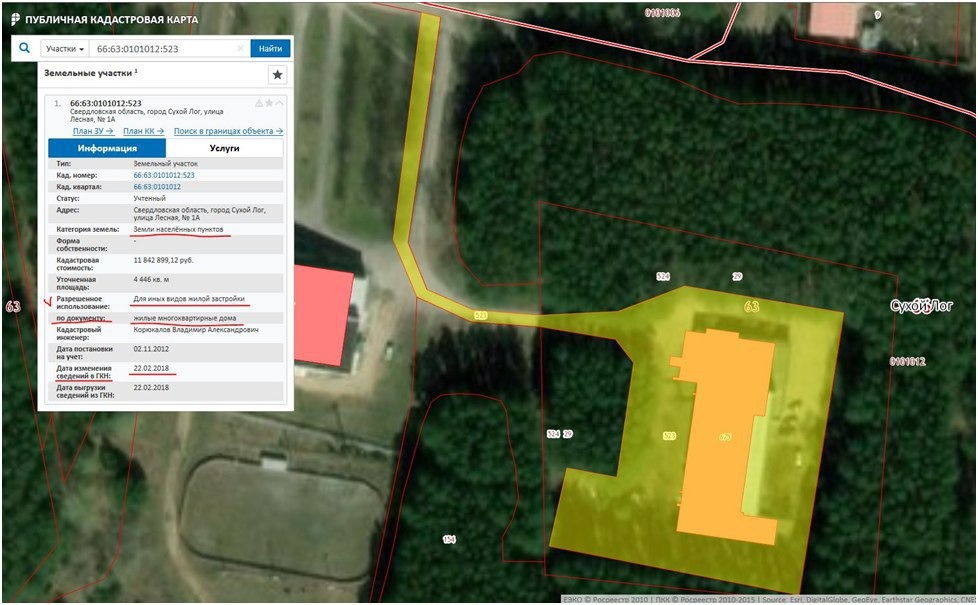 Мы открыли публичную кадастровую карту и увидели, что разрешенное использование земли под домом изменено совсем недавно. Участок под домом был выделен из большего по размеру, который был поставлен на кадастровый учет ранее, в 2012 году.