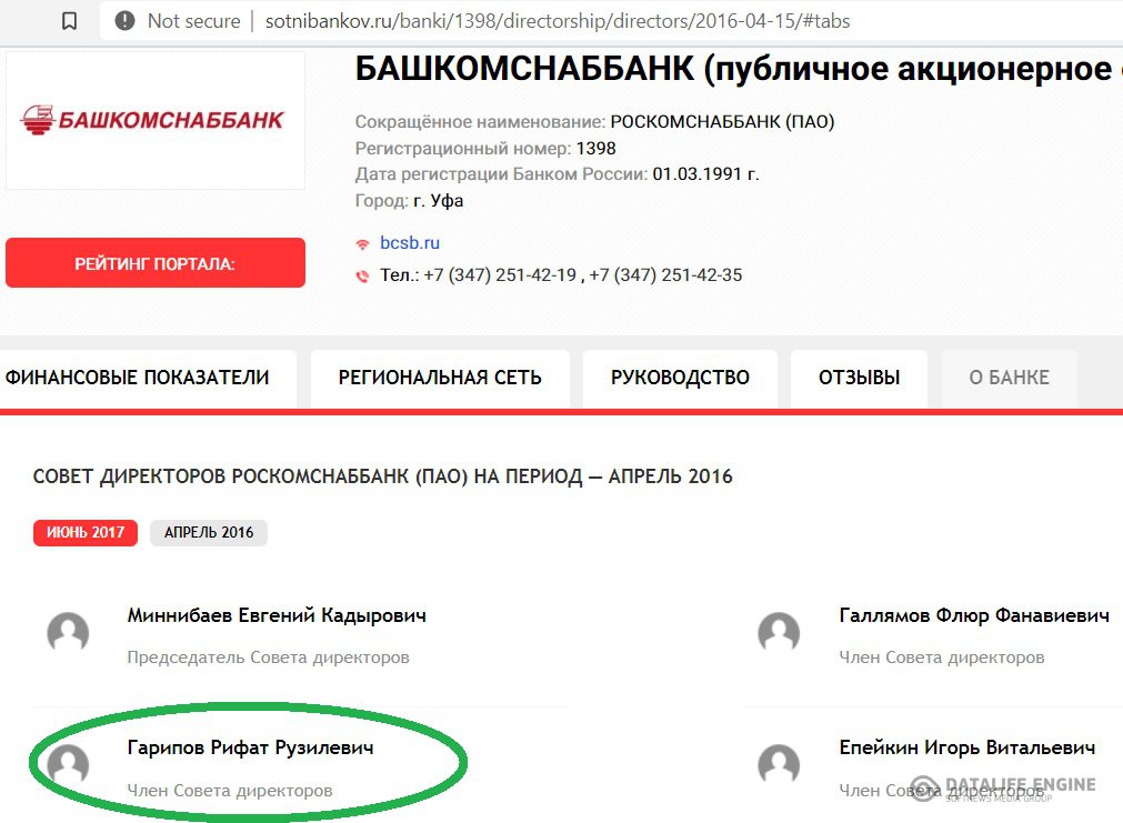 Да всего лишь факты из своей же биографии, когда он сидел в руководстве лопнувшего Роскомснаббанка (РКСБ). В банчке «святой» Гарипов оказался не за красивые глаза, а по родственной линии – РКСБ принадлежал семейству рифатиного дядюшки Флюра Галлямова (местный олигарх, тоже заседал в республиканском госсобрании).