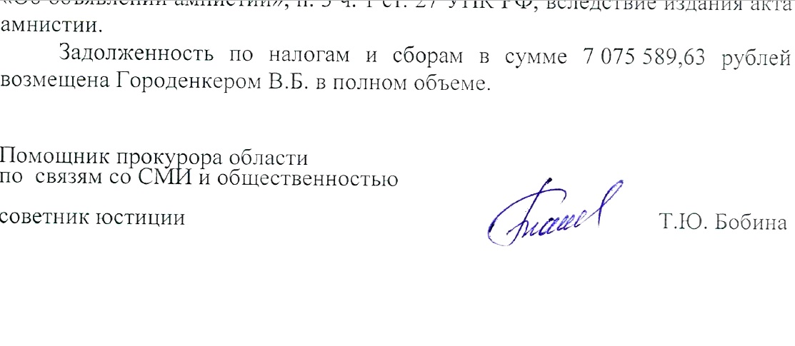 Чем закончилась та история? Как утверждают авторы Telegram-канала "Вова вещает", якобы Городенкеру грозило до пяти лет лишения свободы, но судебный процесс затянулся, и управленец попал под очередную амнистию. Правда, ему пришлось вернуть в бюджет 7 млн рублей.