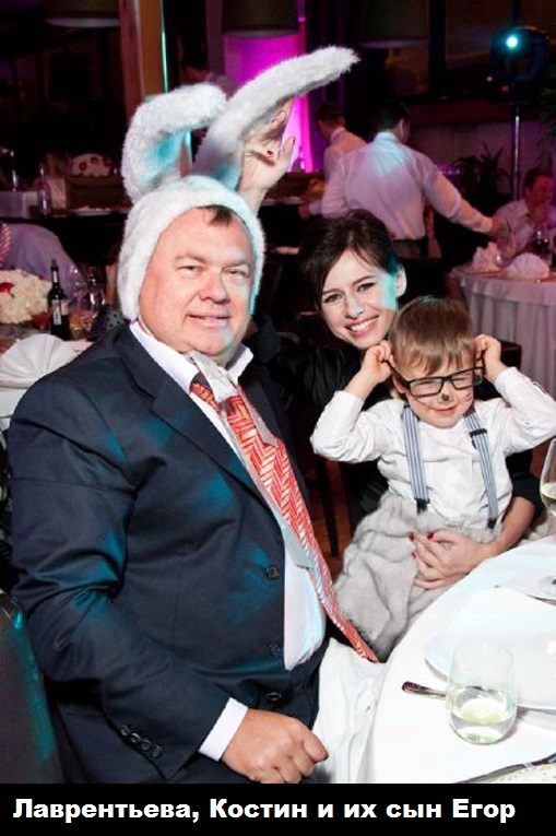 Костин официально женат на пожилой ровеснице Наталье Гордеевой, что не помешало Лаврентьевой родить ему сына Егора. Фотографии мальчика с папой глава пресс-службы ВТБ Вадим Суховерхов за немыслимые деньги годами вычищал из Рунета.