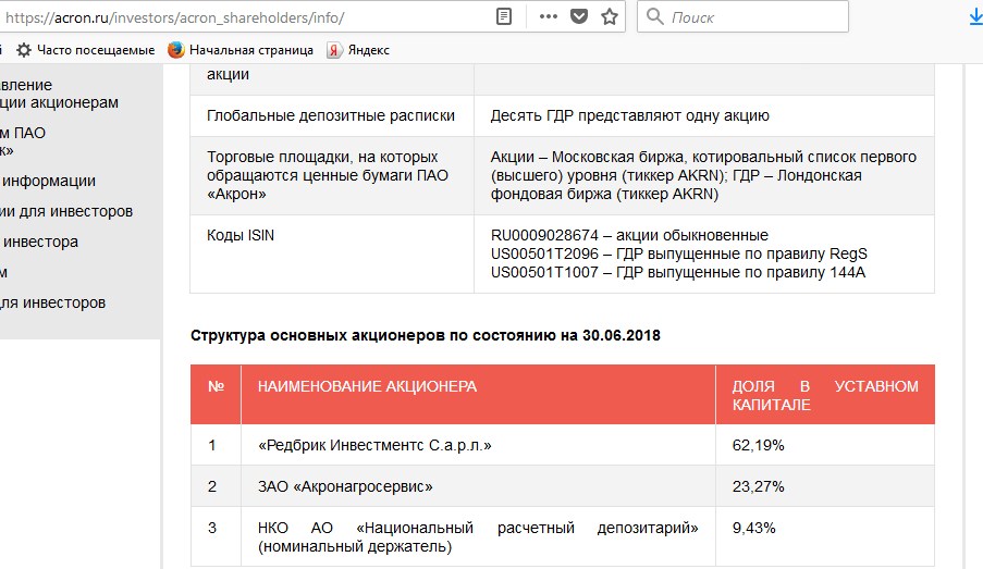 Основными активами Кантора являются ПАО «Акрон» и ПАО «Дорогобуж». Обе организации давно и прочно прописались в иностранной юрисдикции. Тогда как «Дорогобуж» практически полностью (96%), большая часть «Акрона» (62%) записана на «Редбрик Инветсментс С.а.р.л.» из Люксемурга.