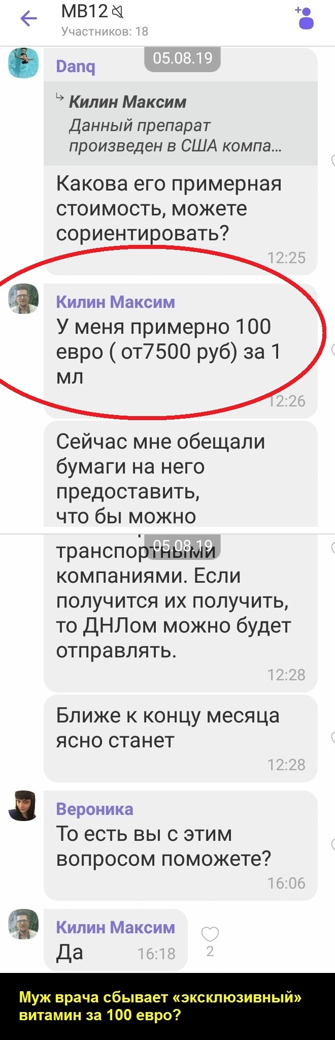 Другой важный вопрос – об участии в коммерческих схемах Килиной её супруга – 38-летнего Максима Килина (ИНН 745207057536), который не имеет никакого профессионального отношения к медицине и фармацевтической отрасли. Тем не менее, именно Максиму Васильевичу приписывают создание и администрирование группы «МВ12» в одном из мессенджеров. Из поступивших в редакцию скриншотов складывается чёткое мнение, что роль господина Килина в группе – сбыт препаратов по пациентам. Методика: от угроз – к пряникам.