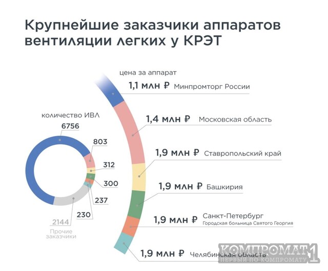 Только с Минпромторгом у структуры Колесова были подписаны соглашения на поставку аппаратов ИВЛ на общую сумму около 7.5 миллиардов рублей. Ещё на 7 миллиардов продали региональным медицинским учреждениям. Самое интересное, что некоторые аппараты приезжали в больницы уже в нерабочем состоянии.