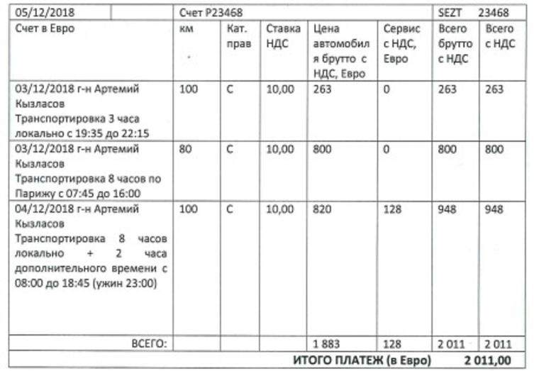 Претензии Вегнера небеспочвенны. «URA.RU» удалось выяснить, что, например, в конце 2018 года гендиректор ОЭЗ Артемий Кызласов потратил 2,11 тысячи евро на такси (147,7 тысячи рублей по сегодняшнему курсу), во время работы на бизнес-миссии «Индустрия будущего для авиационной промышленности» во Франции. Соответствующие документы опубликованы на сайте госзакупок. Здесь есть чек, по которому видно, что Кызласов пользовался транспортными услугами 3 и 4 декабря и проездил 280 километров.