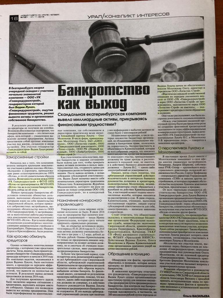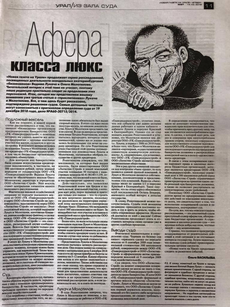 В редакцию «Компромат-Урал» обратились граждане и организации, считающие себя пострадавшими от деятельности Олега Молотилова и Вадима Лукача, представляющих ОПГ (организованную предпринимательскую группу). 8 июня 2020 года на имущество, деньги и доли в предприятиях Молотилова и Лукача наложен судебный арест, аналогичным санкциям подвергнут отец Вадима Лукача – Лукач Саул Израилович.