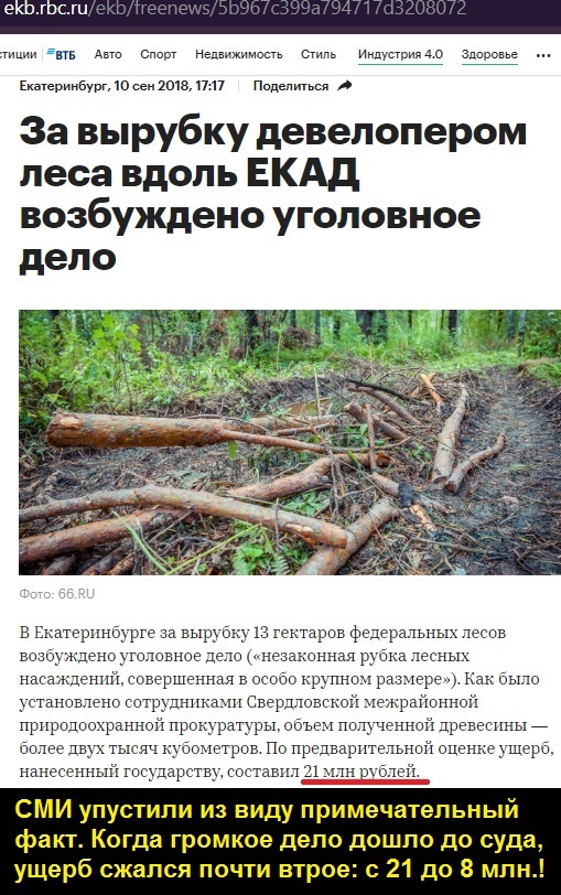 Но эта версия не смотрится правдоподобно: чтобы корысти ради решиться рубить лес (да ещё в столь «промышленном» масштабе!) в черте Екатеринбурга, в зоне быстрой досягаемости правоохранительных и контролирующих органов, - надо быть круглым идиотом. Поэтому вряд ли Головко сам был инициатором варварского обезлесивания, ему реальнее подходит роль исполнителя. А вот кто был заказчиком, следствие, похоже, выяснять не хотело или не могло, «по указанию». Совсем недавно, 9 июля 2020 года, судья Свердловского облсуда Светлана Смагина оставила приговор Максиму Головко без изменения.