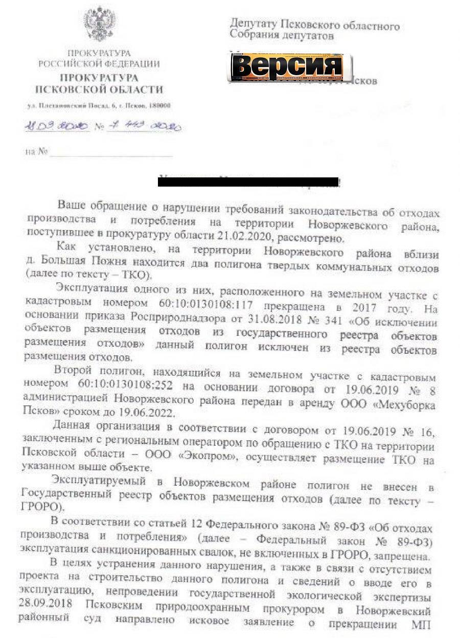 Проблеме утилизации мусора и так называемой «мусорной реформе» посвящено множество телепередач и различных публикаций в средствах массовой информации. Сколько «копий переломано» при их обсуждении. Но, к сожалению, часто ситуацию на местах определяют не законы, регулирующие эту деятельность, и не экономическая целесообразность. Положение с вывозом и переработкой отходов очень часто регламентируют субъективные желания местного руководства, основывающиеся либо на материальной заинтересованности, либо на иных, весьма далёких к нуждам жителей региона, факторах. Так, по всей видимости, происходит и в Псковской области.