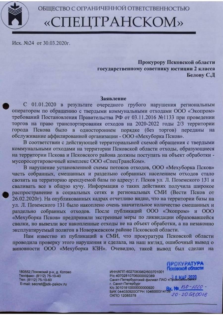 В мае 2019 года в Псковском областном собрании депутатов заявили о возможности расторжения договора с «Экопромом». А в сентябре 2019 года Псковское УФАС обвинило компанию «Экопром» в сговоре с двумя участниками торгов на транспортировку ТКО - ООО «Мехуборкой СПБ» и ООО «Мехуборкой КЗН». Антимонопольщики посчитали, что в результате тарифы были установлены незаконно и завышены как минимум на тридцать процентов. Все эти компании получили штрафы по 60 миллионов рублей, которые сейчас оспаривают в судах.