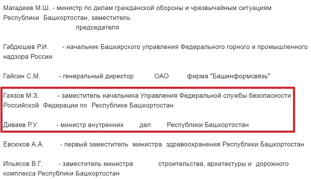 «На втором фото, - продолжает читательница портала «Компромат-Урал», - бывший министр внутренних дел Башкортостана Диваев Рафаил Узбекович, который после увольнения из МВД тоже был «советником» у Галлямова в банке. То есть, и с этим кадром всё ясно. Вот так бизнес в стране строится! Не нужно быть талантливым. Необязательно быть эффективным. Главное - нужную обстановку создать. Сначала ты кормишь важных людей (кстати, деньгами вкладчиков и инвесторов разворованного банка), а потом они тебя прикрывают в нелёгкое время. Бизнес по-единоросски», - выражает своё мнение разгневанная читательница, напоминая, что бенефициар Роскомснаббанка Флюр Галлямов – депутат Курултая Башкирии от «Единой России».