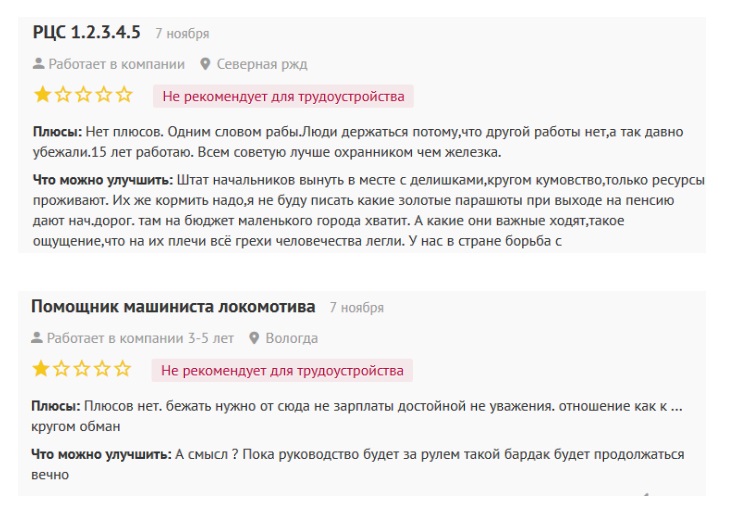 Вот еще несколько отзывов от людей, которые реально работали в РЖД.