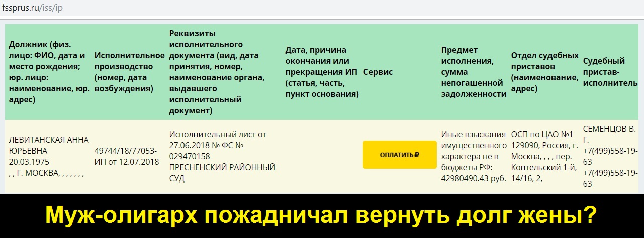 В суде Москвы пострадавшая компания доказала вину Левитанской и обязала жену Андрея Комарова возместить причинённый вред. По исполнительному листу Пресненского райсуда Москвы от 27 июня 2018 года долг составляет почти 43 млн. рублей! Однако Левитанская решила, что её дело – труба, и не платит ничего. Вместо этого адвокат Рустам Курмаев, который защищал Комарова в рамках уголовного дела о коррупции, теперь реализует схему «игр с правосудием», путём схемы ухищрений избавляя мадам Левитанскую от необходимости возмещать ущерб. Виновная сторона искусственно переводит спор из Москвы в Краснодарский край. Наверное, на Кубани, в зоне судейского всевластия Елены Хахалевой и ей подобных, миллиардер Комаров и Левитанская чувствуют себя гораздо комфортнее.