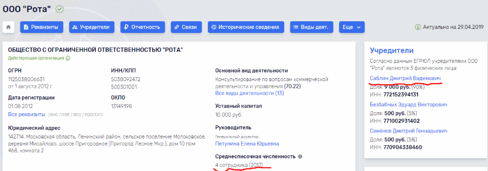 Никаких данных о том, что его доля находится в доверительном управлении, найти не удалось. Получается, что депутат Госдумы нарушает закон, который запрещает заниматься бизнесом? В фирме «Рота» работает всего 4 сотрудника. При выручке в 13 млн руб. фирма с 2012 г. работает без прибыли, что может свидетельствовать об уклонении от налогов или выводе денег. Возможно, что ООО «Рота» для этого и предназначена? Почему за столько лет к работе «Роты» не возникли вопросы у компетентных органов?