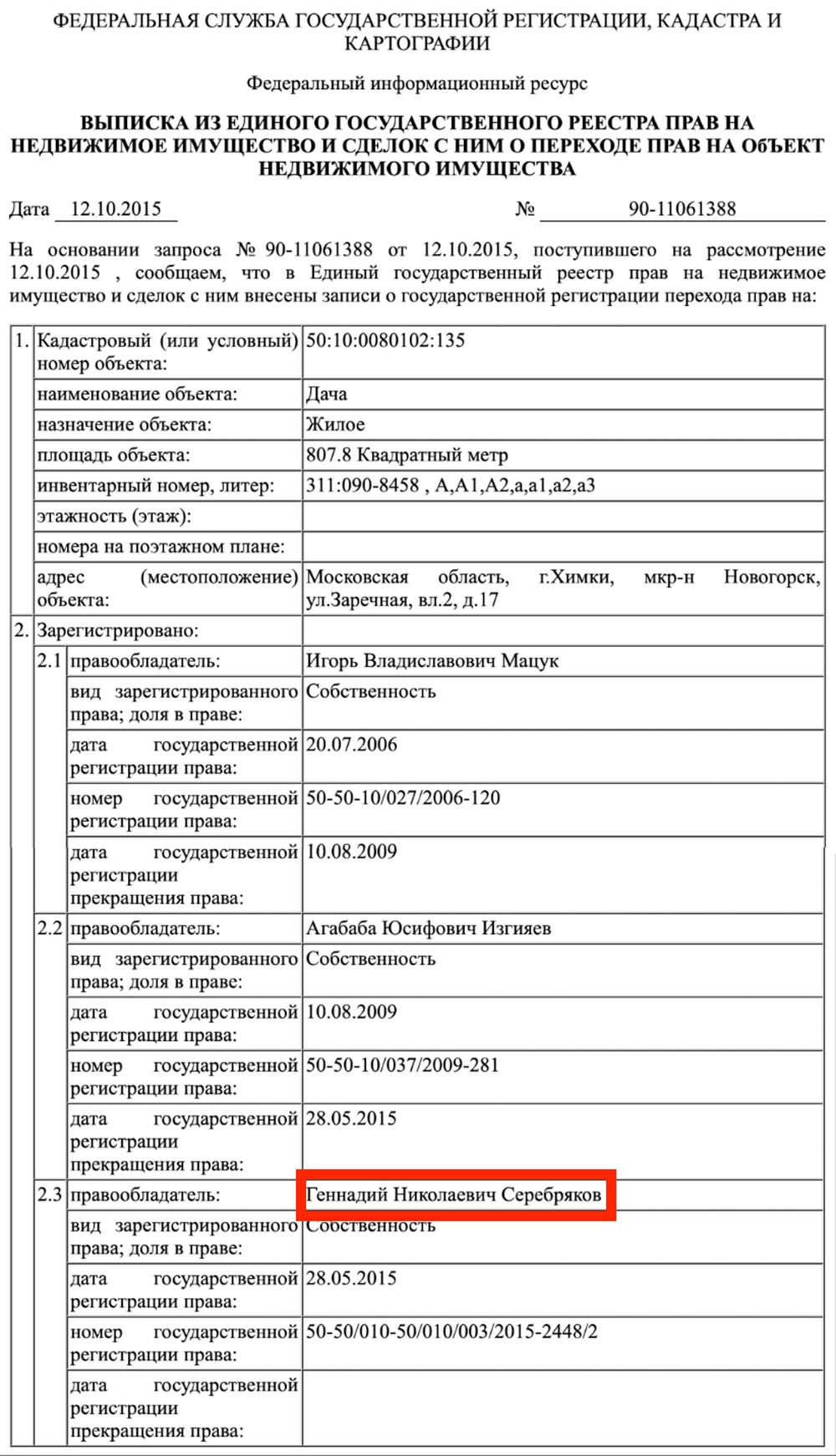 А что касается участка, понятно одно - Рогозин пользуется им уже несколько лет. Кто на самом деле скрывается за шифровкой «физическое лицо», мы тоже знаем - в своих рабочих архивах мы обнаруживаем, что четыре года назад мы уже брали выписку на этот дом. Тогда, видимо, не было такой угрозы национальной безопасности, и хозяин этого 800-метрового особняка значился под своим именем.