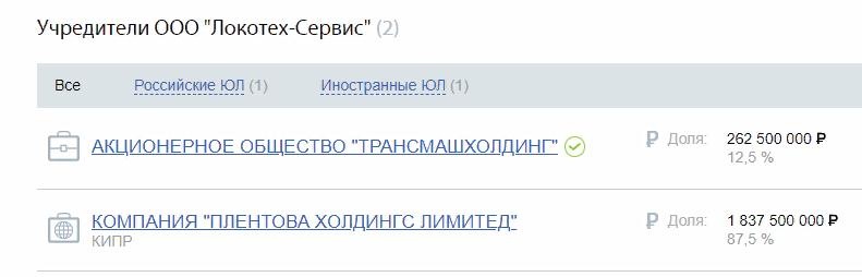 На сегодняшний день существует только одно АО «Желдорреммаш», которое якобы является 100% «дочкой» РЖД. Однако управляющей компанией «Желдорреммаша» является ООО «Локотех», единственным учредителем которого является кипрская компания «Тасмонеро Инвестментс Лимитед».