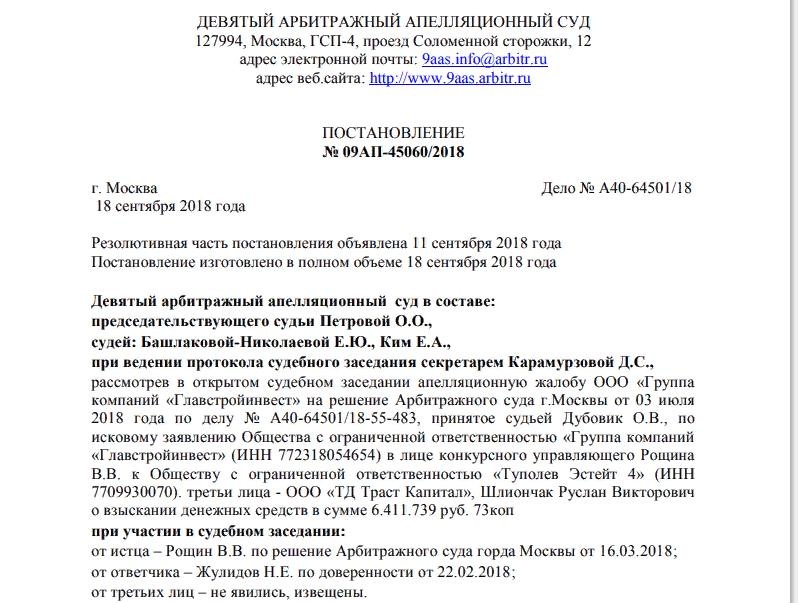 Понято, что это постановление в Арбитражном суде Московского округа никто, наверное, обжаловать не будет. Хватит уже комедию ломать. От такого только грустно становится. Особенно, если прислушаться к слухам, что Руслан Шлиончак является адвокатом семьи Токарева и был конкурсным управляющим компании "Яуза Эстейт", ликвидированной в 2017 году.