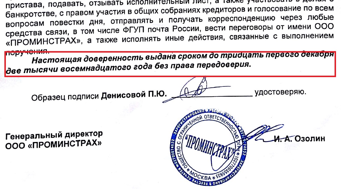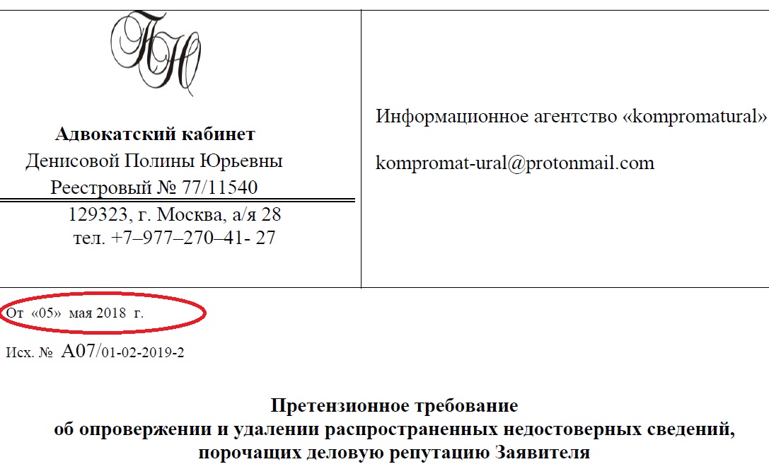 Эксперты портала «Компромат-Урал» усомнились в компетентности Полины Юрьевны. Так своё обращение к нам в феврале 2019 года она обосновывает сканом доверенности «Проминстраха», действие которой прекращено ещё до 31 декабря 2018 года. Кроме того, само обращение адвоката по поводу публикации за 16 января 2019 года ошибочно датировано маем 2018-го. В какую сумму компании «Проминстрах» обошлись подобные юридические услуги, пока неизвестно.