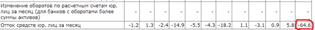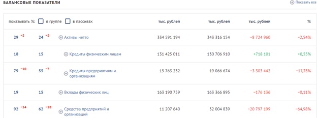 Последняя цифра особенно настораживает. Получается, что какие-то предприятия и организации забирают из банка деньги. И они могут быть структурами того же алкогольного холдинга "Руст" Рустама Тарико. Он выводит деньги из своего кредитного учреждения? Ещё месяц назад по этому показателю банк был в плюсе на 1.7 млрд руб. Куда ушло более половины средств?