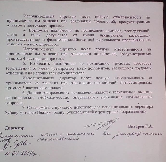 Но вернёмся в 2019 год, когда «уралмашевцы» вцепились в освоение бизнеса на коммунальных отходах. Семейство Терентьева быстро отказалось от рисков персональной ответственности для своих членов от участия в мусорном «схематозе». Уже спустя пять месяцев Григория Вихарева во главе «Спецавтобазы» сменила никому публично не известная 34-летняя Наталья Зубова (согласно публичным данным ФНС, имеет ИНН 665205589863, прежняя фамилия - Сергеева), уроженка села Юва Красноуфимского района Свердловской области. «Семья» очень спешила переложить формальную ответственность с Вихарева на Зубову. По выписке из ЕГРЮЛ она директорствует с конца июня 2019-го, но уже в апреле её «ознакомили» с приказом о том, что как новоявленный «исполнительный директор» именно она, Зубова, а не официальный руководитель юрлица Вихарев, отвечает за любой чих на предприятии.